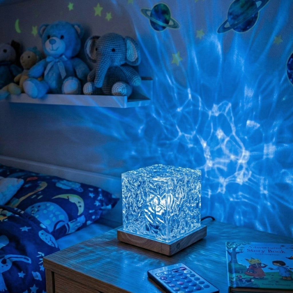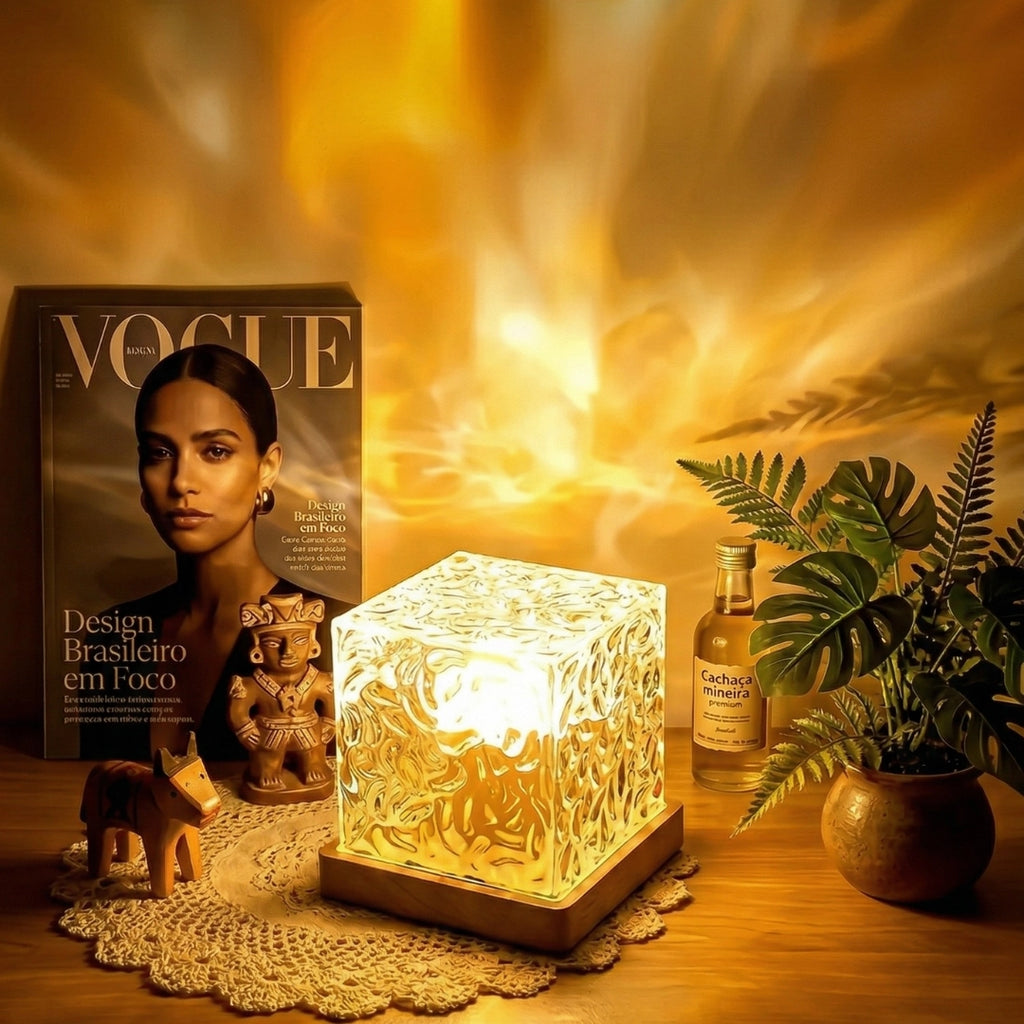 O design interno exclusivo, combinado com a refração da luz, projeta um efeito visual hipnotizante nas paredes e no teto, simulando o movimento suave das ondas da água. É a peça central perfeita para relaxar, meditar ou receber os amigos.