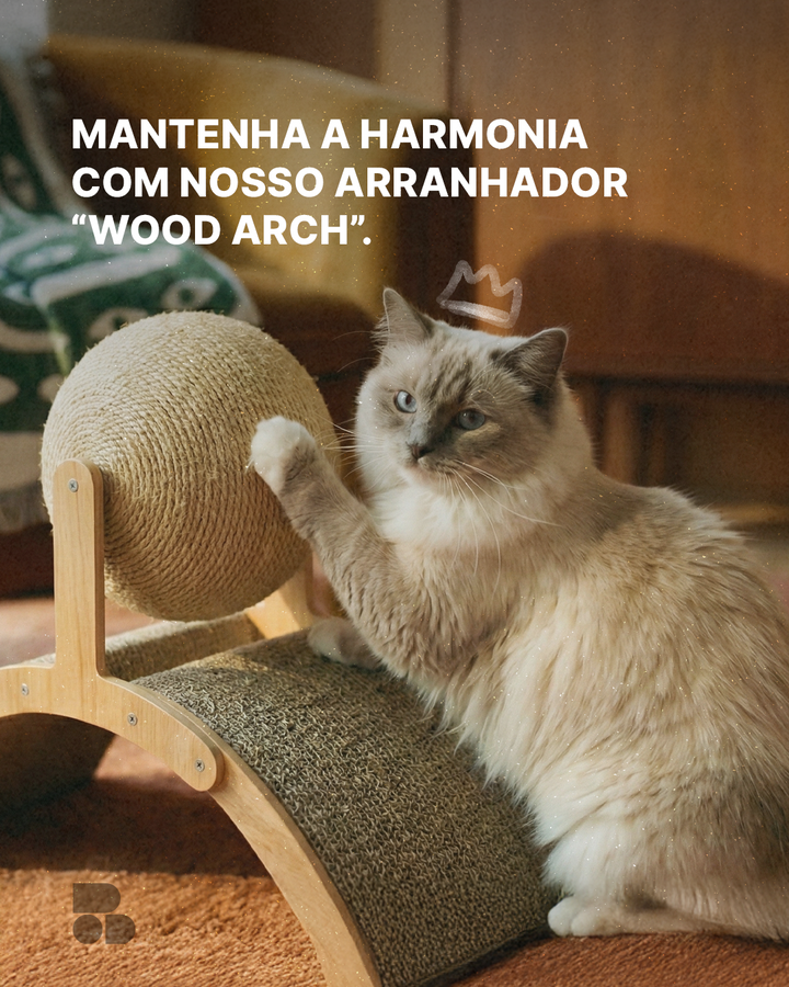 Quem tem gato sabe: arranhar é instinto, destruir o sofá não precisa ser. O Arranhador Wood Arch foi desenhado para tutores exigentes que buscam proteger seus móveis sem poluir a decoração da casa com itens de plástico ou cores gritantes.